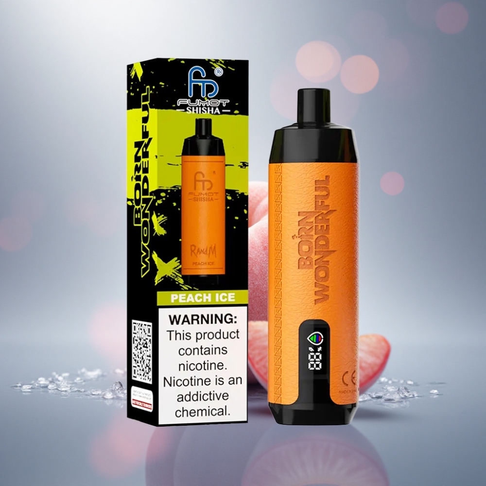 RandM Fumot Shisha 10000 Puffs Piersic Gheață cu Indicator LED și Baterie 850 mAh