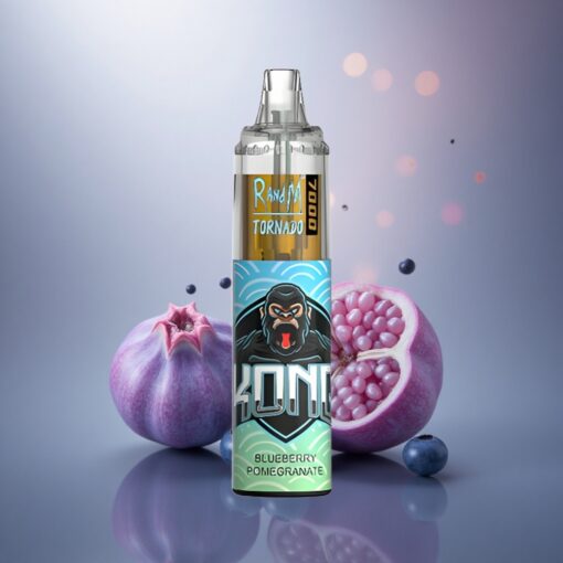 RandM Fumot Tornado 7000 Puffs Afine Rodie cu 850 mAh și 5% Nicotină