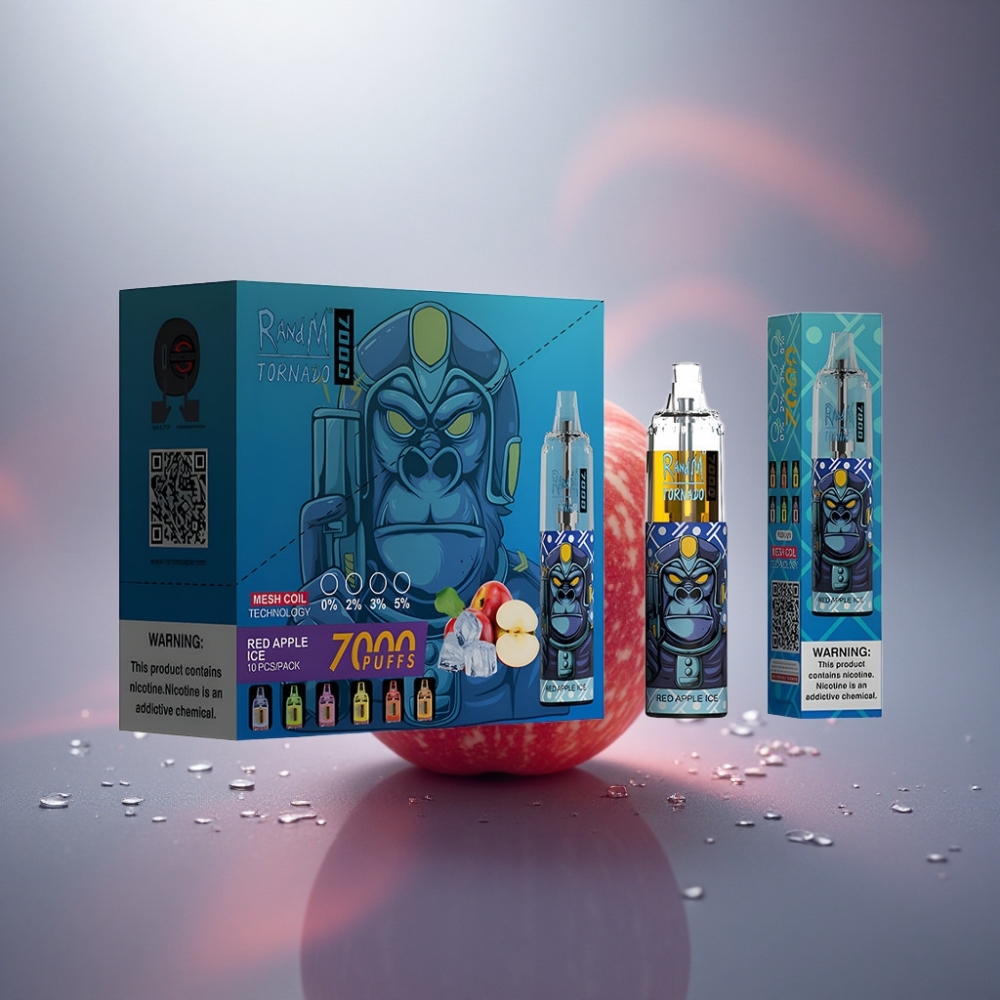 RandM Fumot Tornado 7000 Puffs Măr Roșu Gheață cu 14 ML E-lichid și 850 mAh Baterie