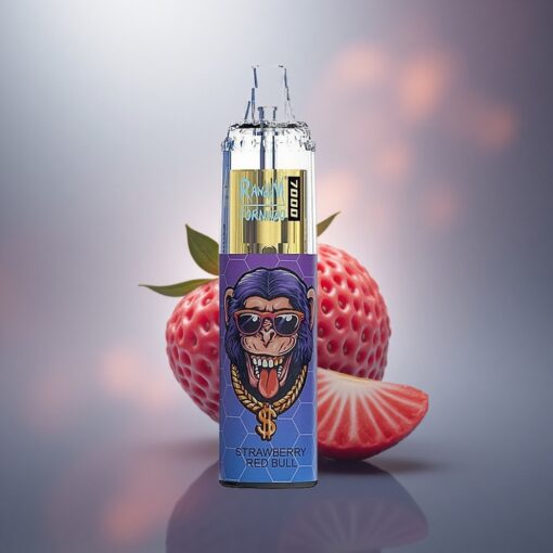 RandM Fumot Tornado 7000 Puffs Red Bull cu Căpșuni și Coardă Mesh, 850 mAh, Nicotină 5%